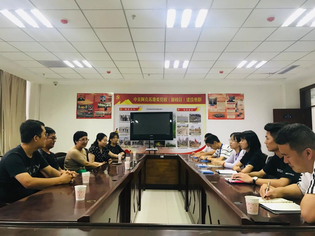 今年我校有包括我院石张宁、李飞两名同学在内的6位应届毕业生申请援疆,他们经过严格的选拔最终被录取在新疆阿克苏地区工作,调研组一行在阿克苏地委组织部的协助下,首先走访了我校2018年援疆的经济管理学院2014级学生张小妍,实地查看了她工作、生活的地方,听取了她援疆一年来的工作感悟,曹玉玲老师代表学校向张小妍同学赠送了纪念品并鼓励她按照组织安排,认真做好本职工作,不忘学习,在服务美丽新疆建设中做出贡献;随后,调研组一行来到阿克苏地委党校看望了正在那里学习的石张宁、李飞、胡婉婷、张秀娟和肖坎等6名同学,听取了他们在地委党校学习的情况和他们对援疆、对服务阿克苏的认识,同学们依次发言,我院石张宁同学表示:建设美丽新疆是时代的召唤更是青年人的责任和担当,自己将努力学习将青春热血洒向南疆大地,努力践行一名共产党员的初心和使命。曹玉玲老师代表学校向援疆校友赠送了纪念品,并希望同学们认真学习理论知识和当地文化、习俗,尽快适应阿克苏的环境,积极融入到当地的工作环境中去,希望同学们通过实际行动让阿克苏人民缔造的柯柯牙精神代代相传。