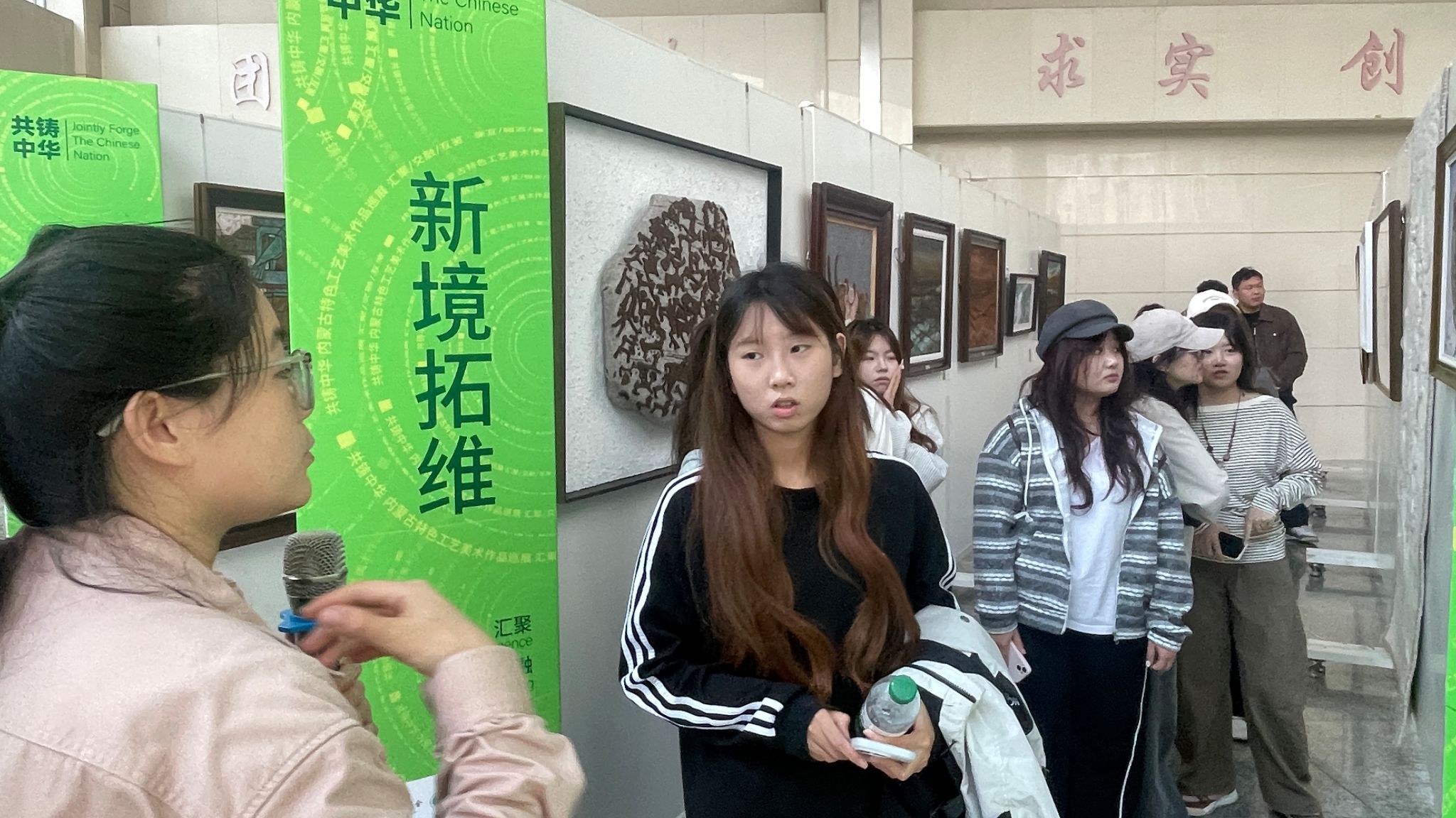 观展过程中,团学骨干们认真观摩每一件作品,聆听导览讲解,深入了解其中蕴含的独特艺术语言与民族文化内涵。大家纷纷表示,这些兼具民族韵味与创新表达的作品,不仅拓宽了自身的艺术视野,也激发了对于设计创作的新思考与新灵感。