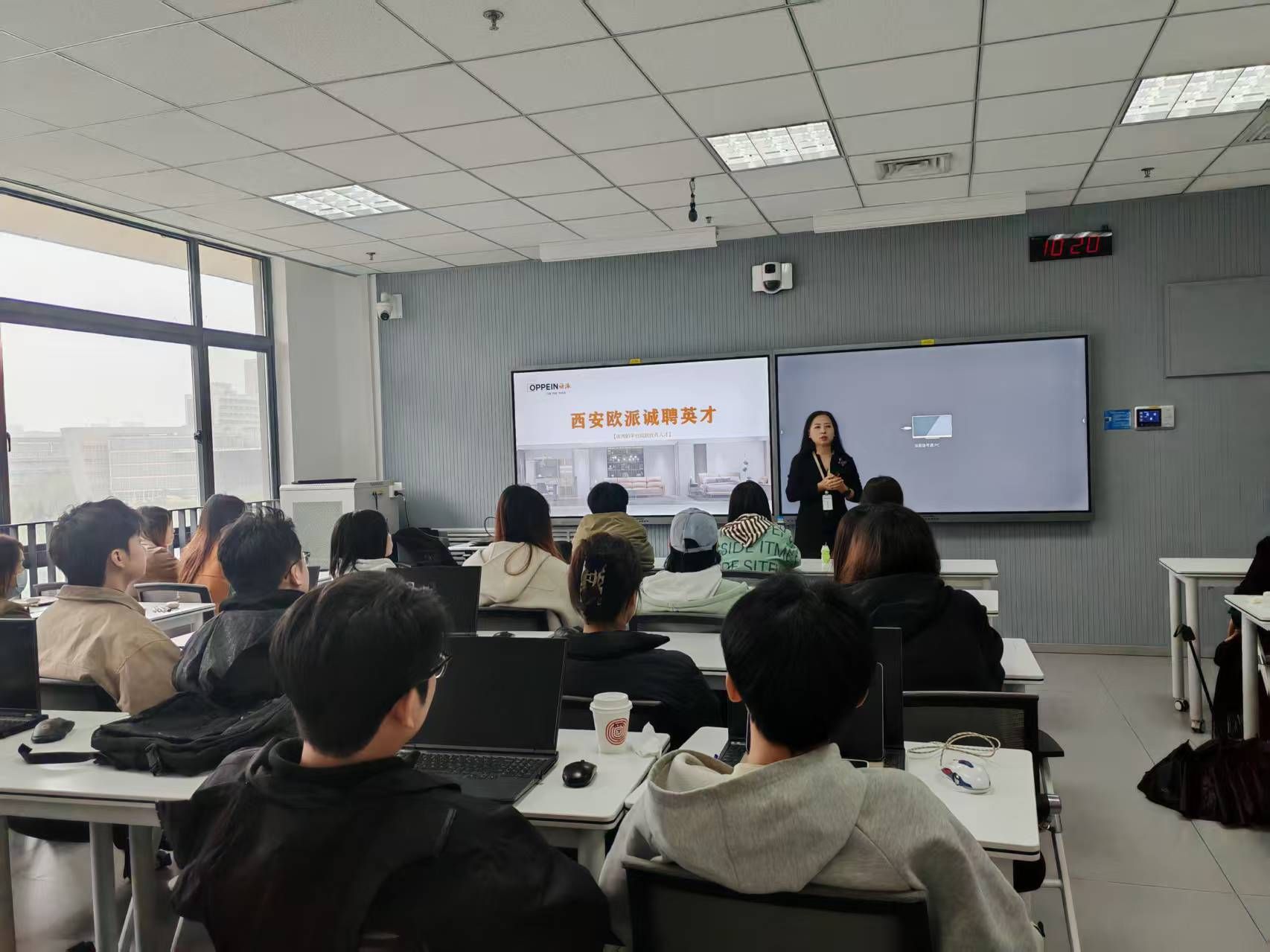 10月20日,设计学院在教7-405开展陕西欧派美家装饰有限公司专场招聘会,本次招聘会由公司人力总监郭晓辉主讲。