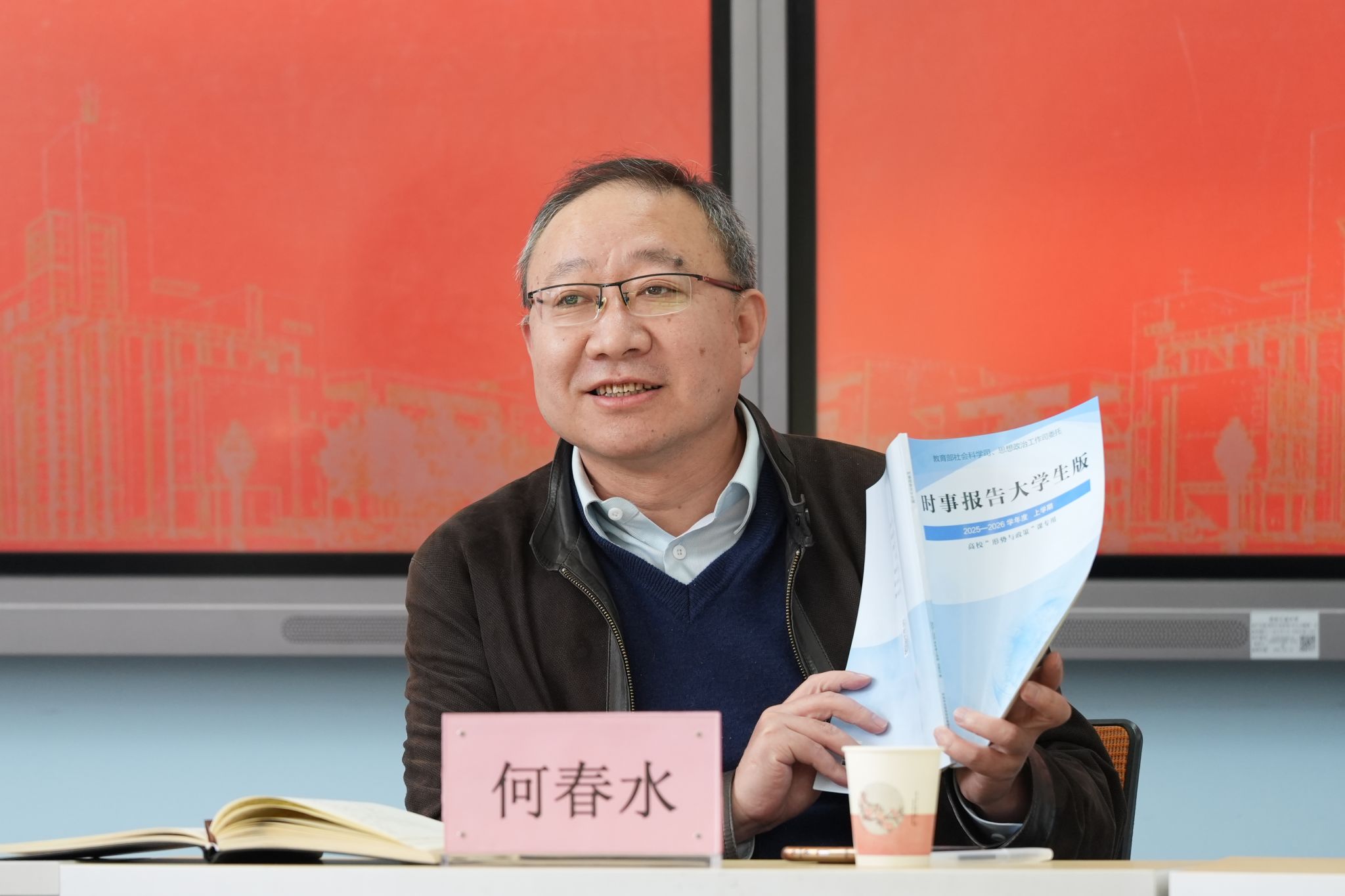 12月25日,副校长何春水在教3-101为设计学院师生讲授“纪念抗战胜利 坚定民族信念”专题思政课。学院党委书记周著主持,党委副书记周倩、学工办主任杨娜娜、辅导员贾宇星参加。