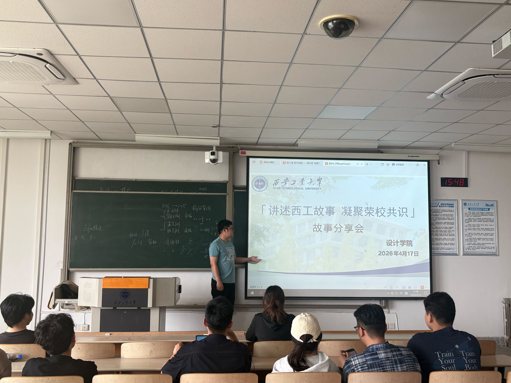 4月17日,设计学院研究生于教2-412开展“讲述西工故事,凝聚荣校共识”主题故事分享会,辅导员贾宇星主持。
