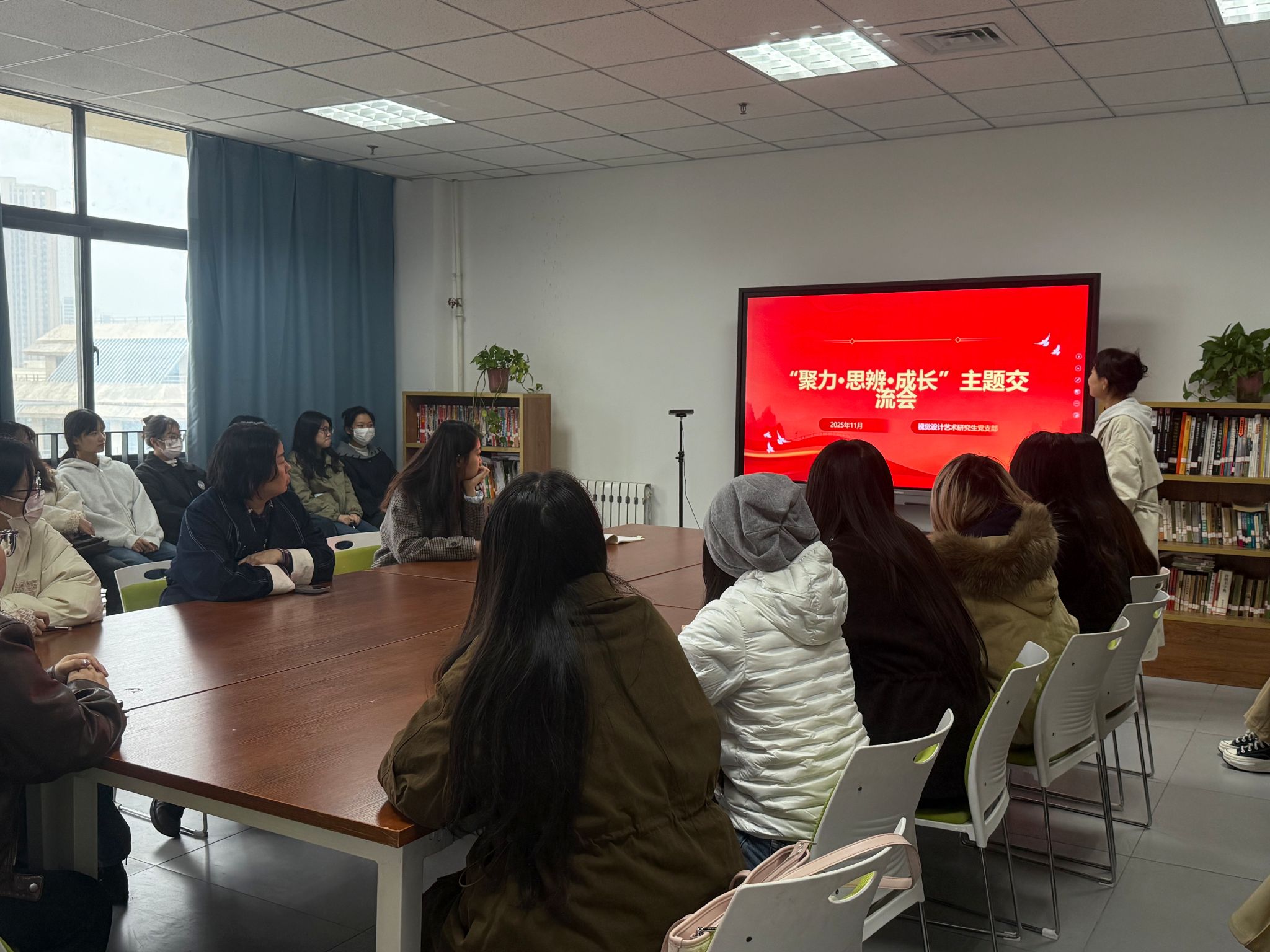 11月13日,视觉设计艺术研究生党支部在教7-617开展了“聚力·思辨·成长”专题交流会,党支部书记张媛主持。
