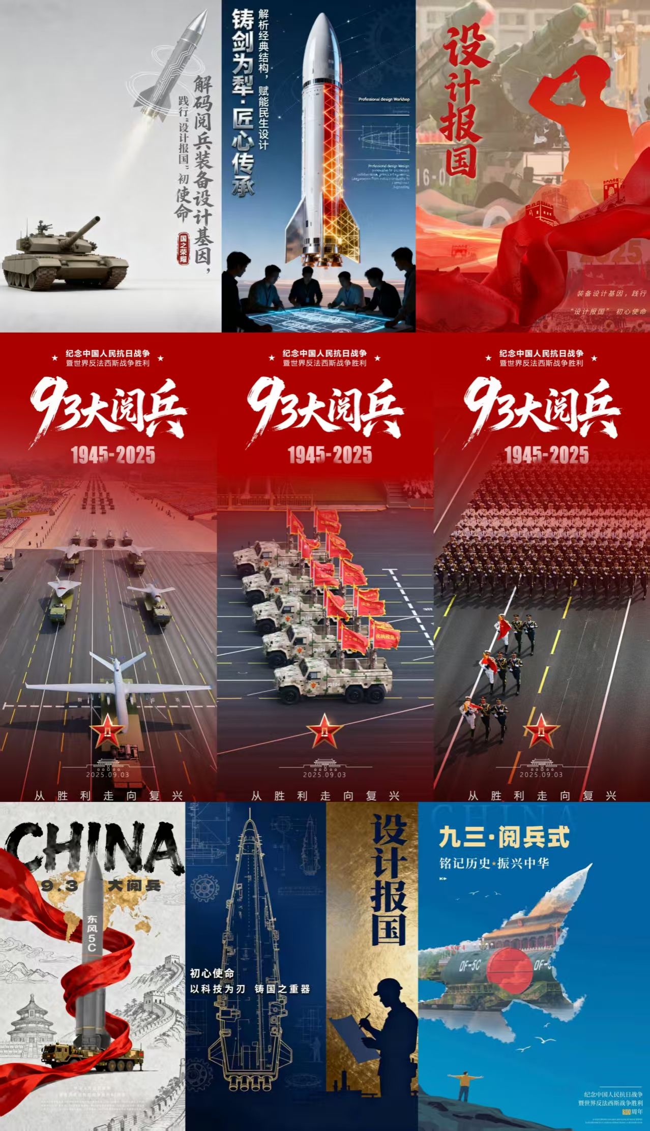 活动主要围绕93阅兵纪念抗日战争暨世界反法西斯战争胜利80周年等重大活动为创作要素,从设计美学角度解读阅兵仪式,将专业素养与爱国情怀相融合,挖掘其中的视觉符号和象征意义创作出一系列富有创意的海报作品。