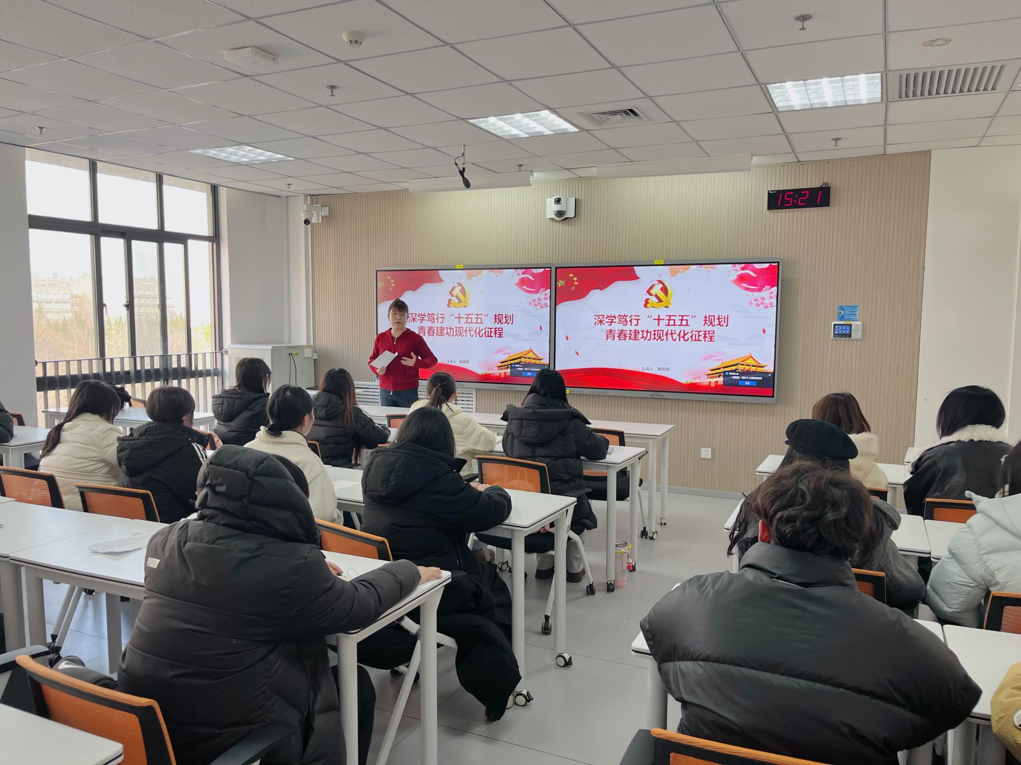 12月26日,视觉传达设计本科生党支部在教7-617开展“深学笃行“十五五”规划 青春建功现代化征程”专题党课。党支部书记杨娜娜讲授。