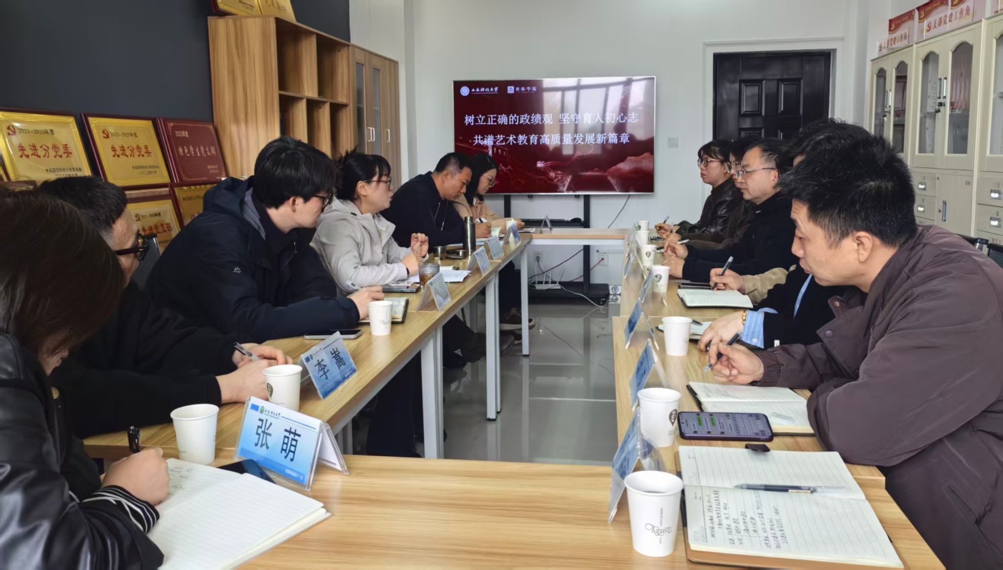 3月25日,设计学院党委书记周著一行七人赴西安科技大学艺术学院调研交流,西安科技大学艺术学院党委书记岳海华、院长杨惠珺、副院长冯青及各党支部书记代表热情接待了调研组一行,并参与座谈。